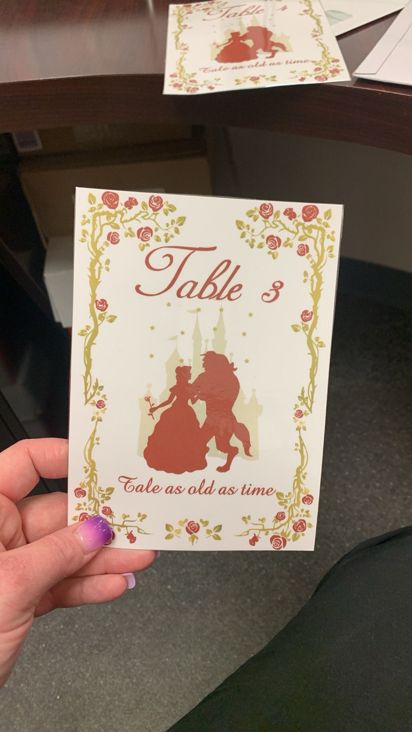 Beauty and The Beast Story Book Table Numbers Red and Gold - Order Only The Number Of Cards You Need!