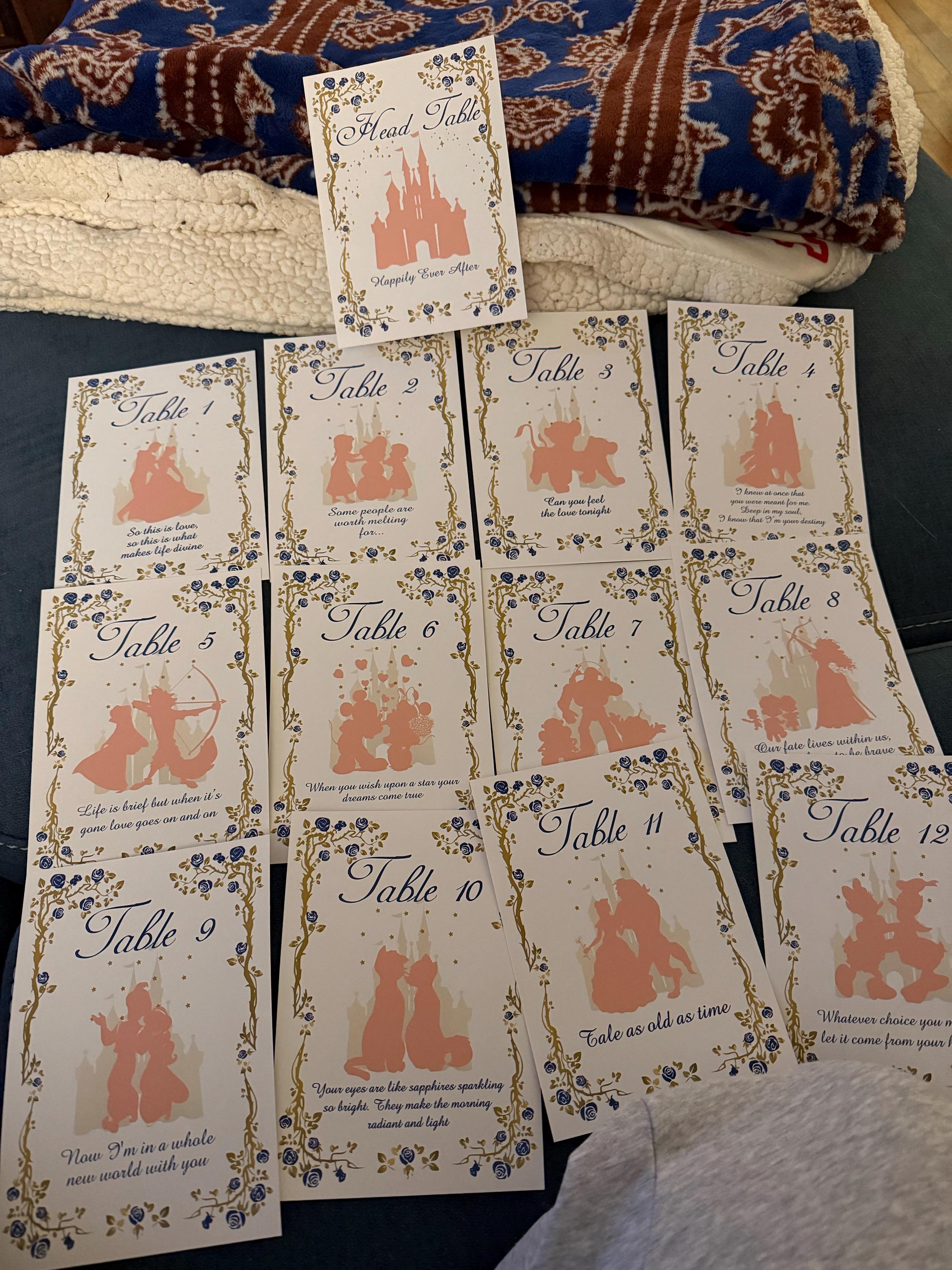 ♥ The design is the same for all cards with the silhouettes, quotes and storybook name changes to the storybook characters. Table numbers may be used in place of storybook names. Table numbers are randomly assigned unless specified at the time of purchase.