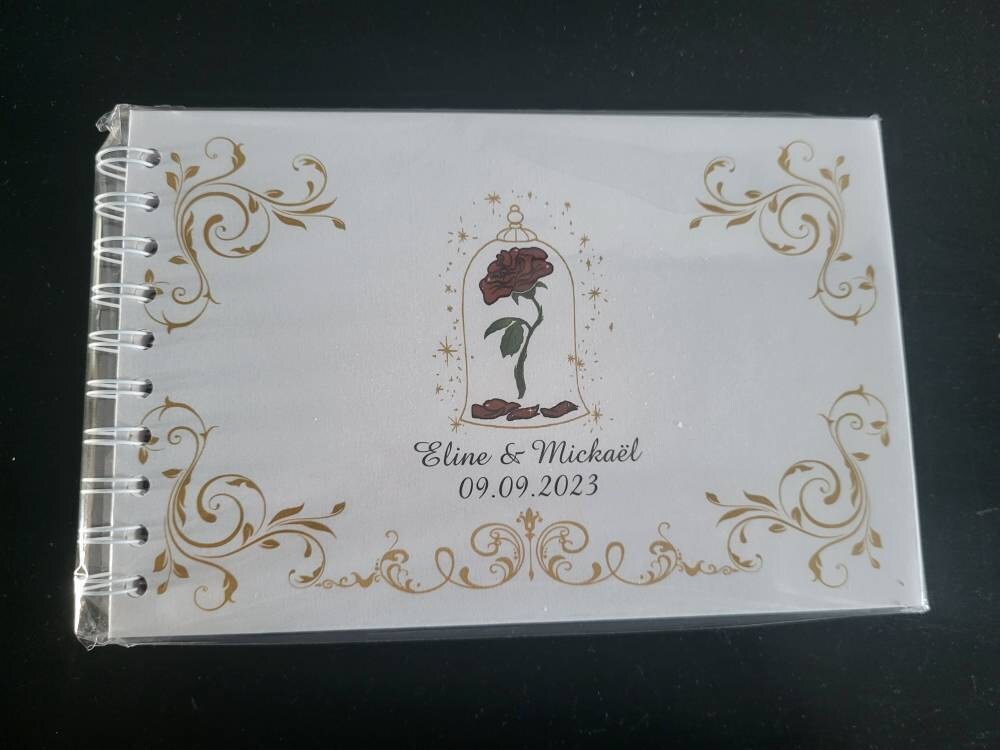 Unique One-Of-A-Kind Handmade Blue and Gold Beauty and The Beast Enchanted Rose Wedding Guest Book